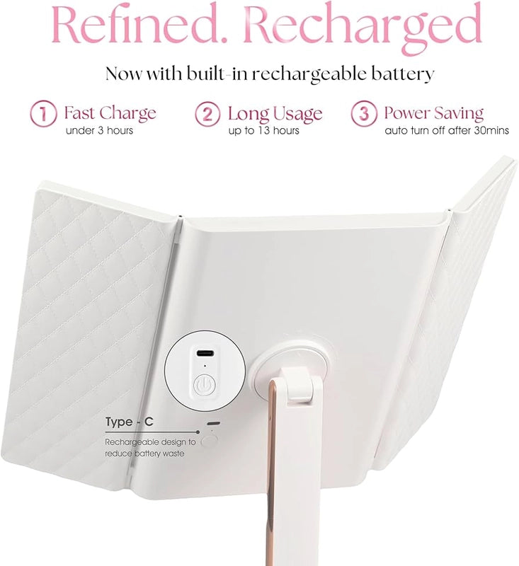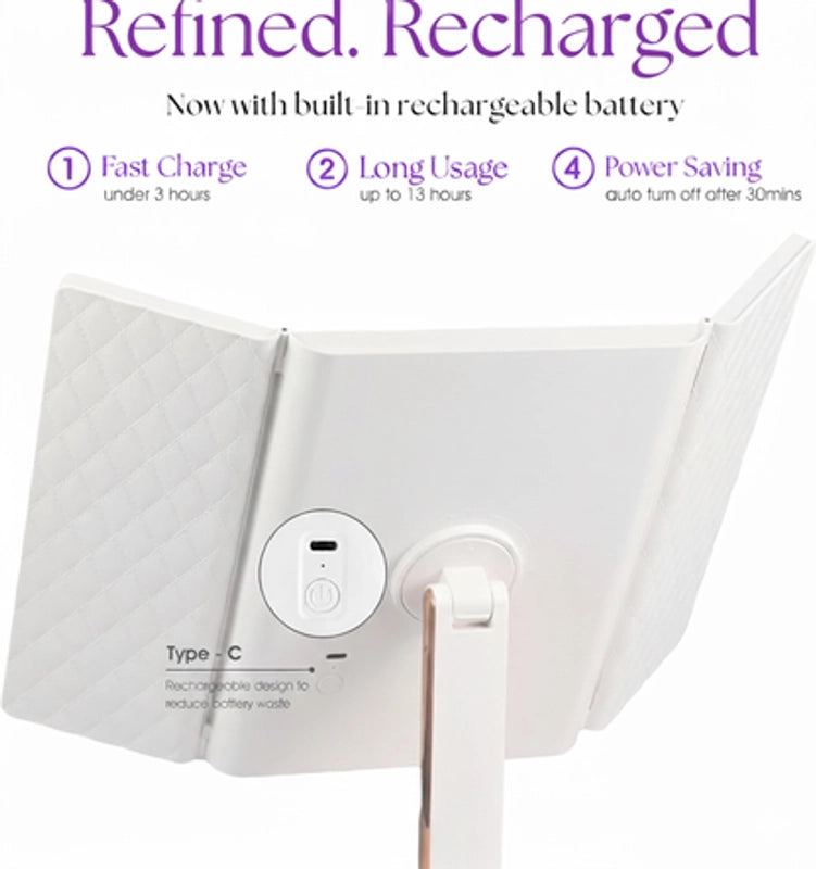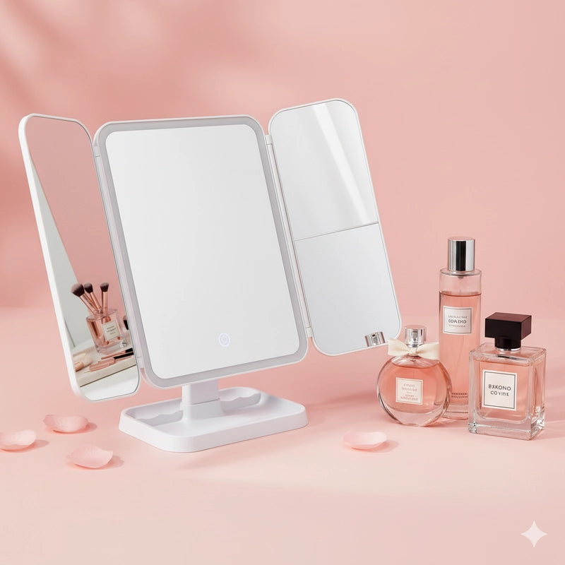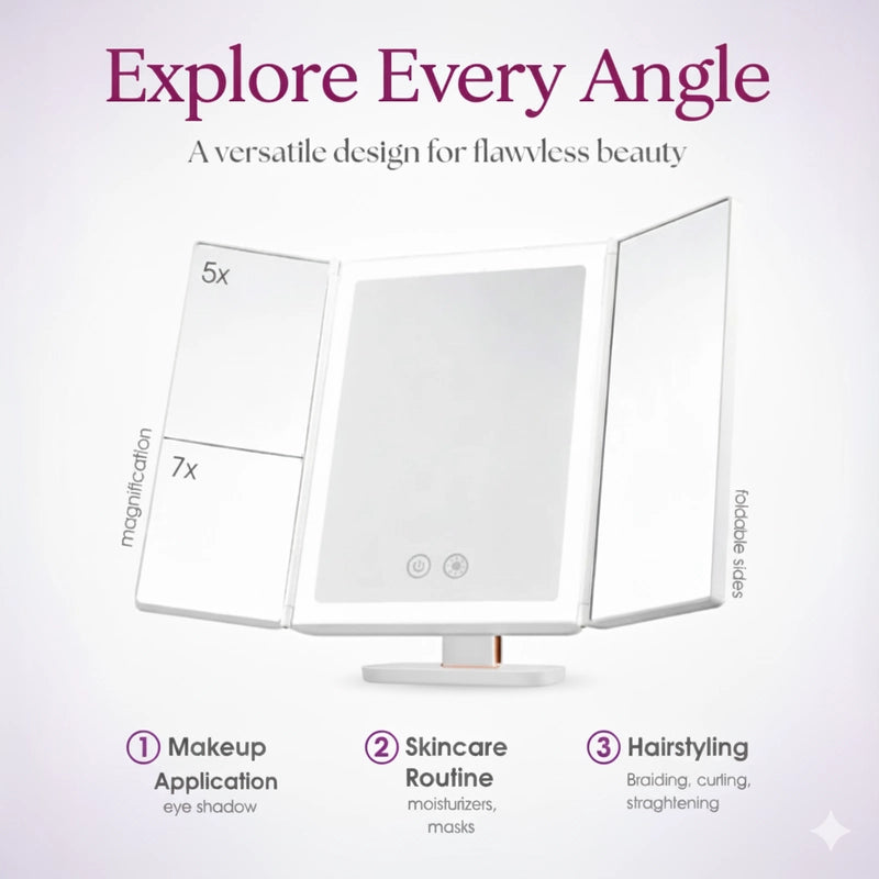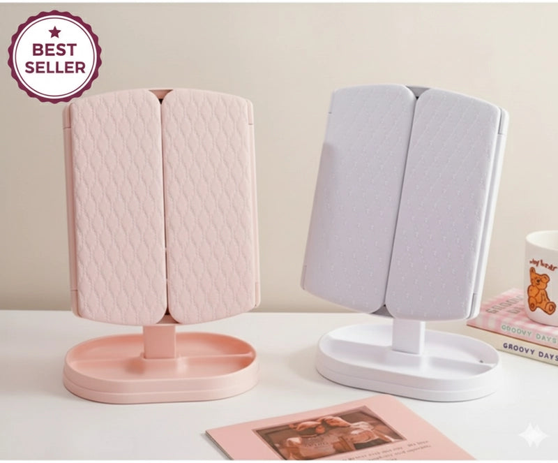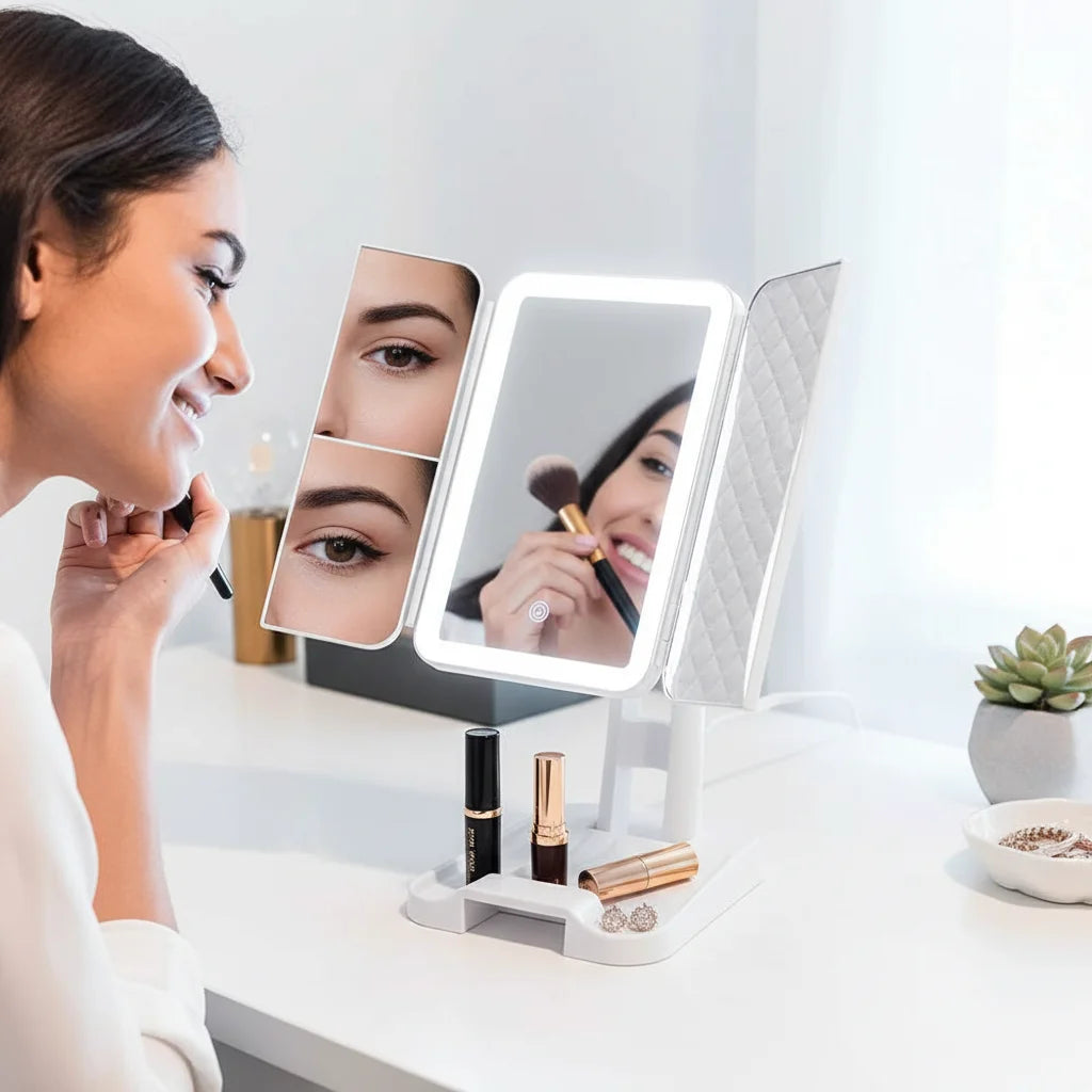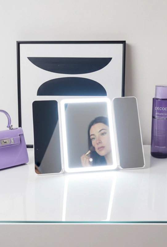 Absolutely! Its clever trifold design means it folds flat, protecting the mirrors and making it super compact. Slip it into your bag and take your perfect lighting and flawless makeup routine with you, wherever you go.